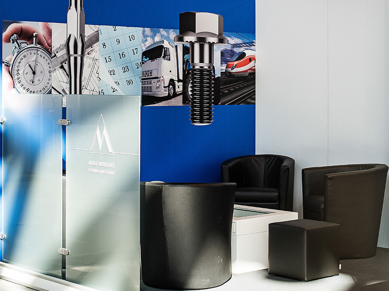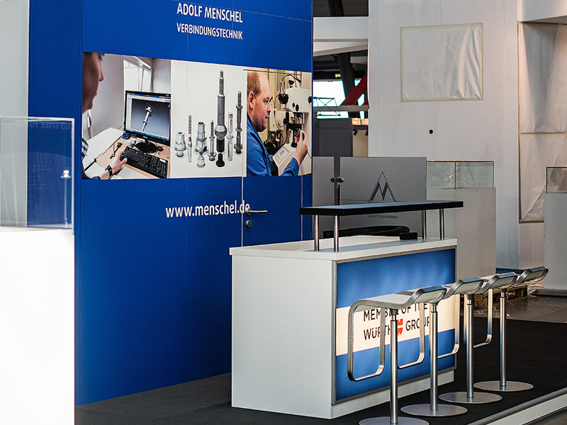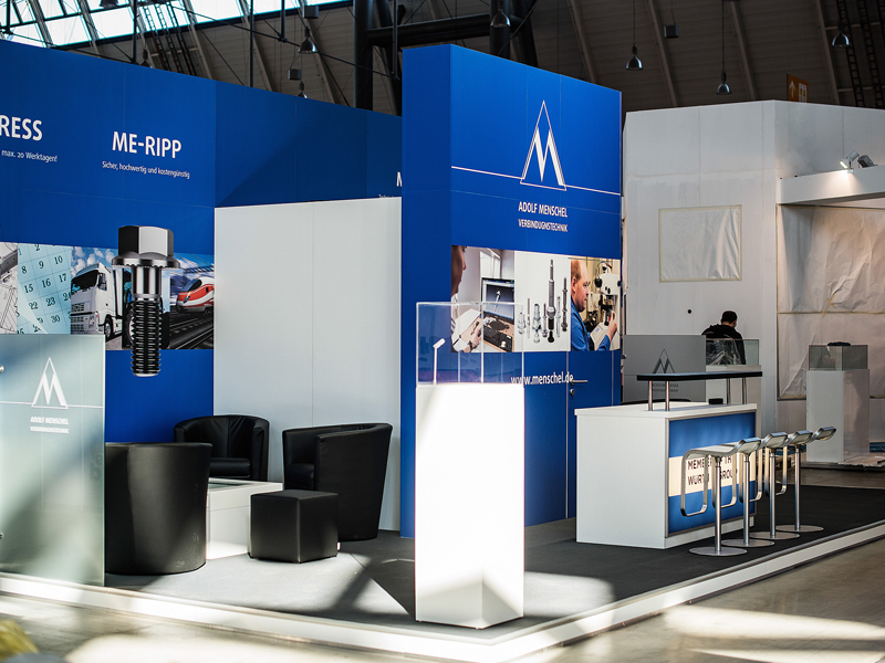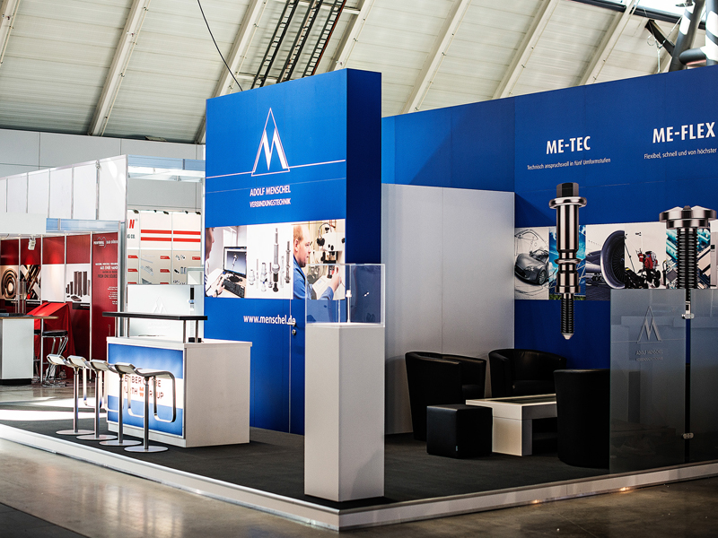 Job definitionFor Plettenberger company Adolf Menschel Verbindungstechnik GmbH & Co. KG, we have built a 40 sqm stand for the Fastener Fair 2015. In cooperation with the planning agency “Becker concept” we produced a booth according to 3D drawings based on a predefined corporate identity.